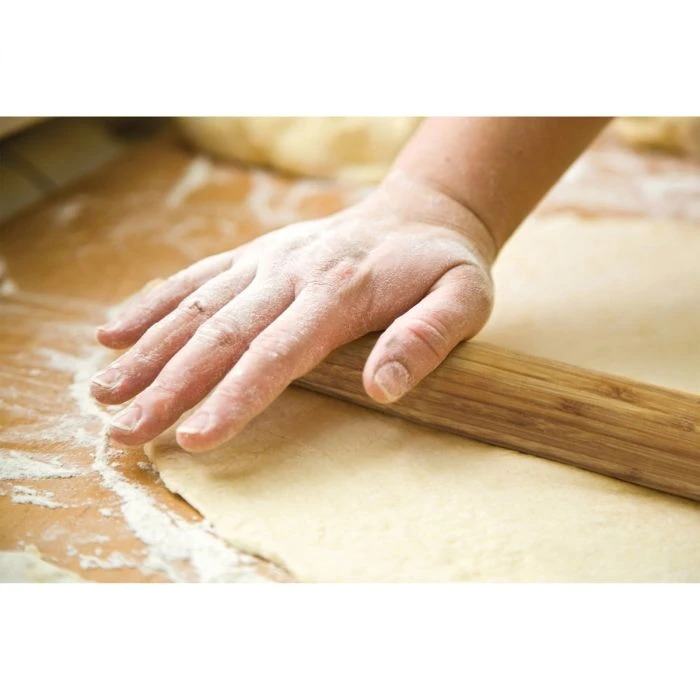 This Asian-Style Rolling Pin is perfect for rolling out dough! Made from 100% natural bamboo, it is lightweight and durable and is great for rolling out your favorite dumplings, cookies, and other pastries.