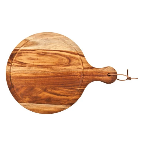 This round Acacia Wood Artisan Cheese Paddle by Twine is as useful as it is decorative. The gorgeous board is perfect for serving or cutting cheeses and meats. It also adds a farmhouse touch to your decor.