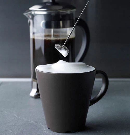 Aerolatte’s Original Steam-Free Milk Frother with a bright polished-chrome finish aerates milk into a thick, rich foamy beverage for topping off coffee or tea with ease. Submerge the whisk end of the frother, then press and hold the power button to create a creamy, silky froth on top, about 30-60 seconds or until desired consistency is achieved.Â