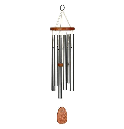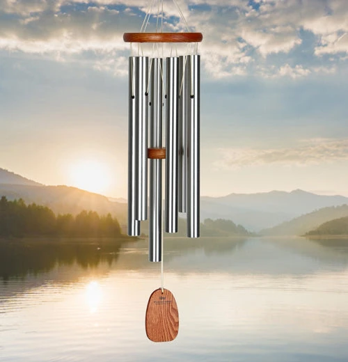 This Amazing Grace chime is tuned to the inspiring tones heard in the opening measure of Amazing Grace, one of America’s best-loved and most widely known hymns. This chime features an ash wood top with a cherry finish and 6 silver aluminum tubes. Create a calming sanctuary in your landscape or enhance your meditation garden with this elegant, serene chime.