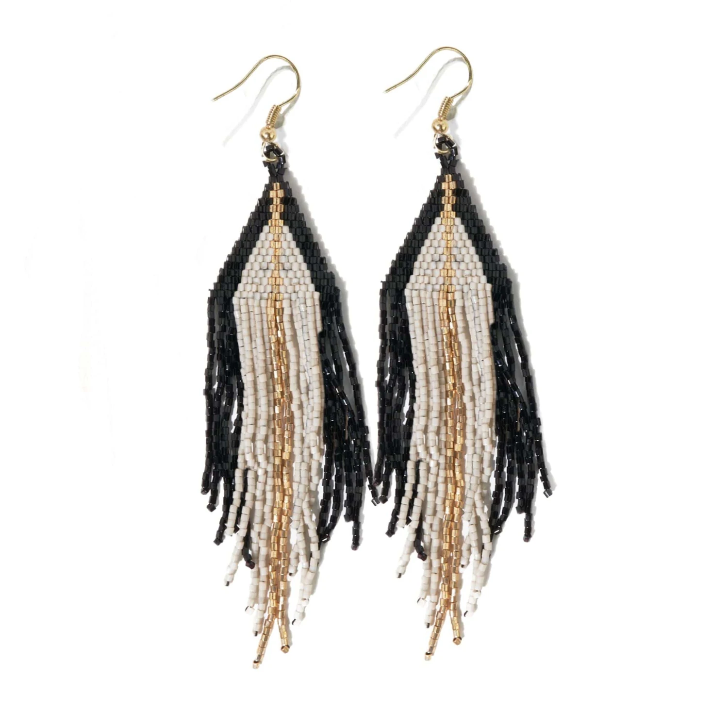 You’ll look stunning wearing these Black, Ivory, and Gold Luxe earrings. These stunning earrings feature delicate glass beads woven into the design. These fashion accessories are lightweight so you can wear them anywhere from the office to a night on the town.