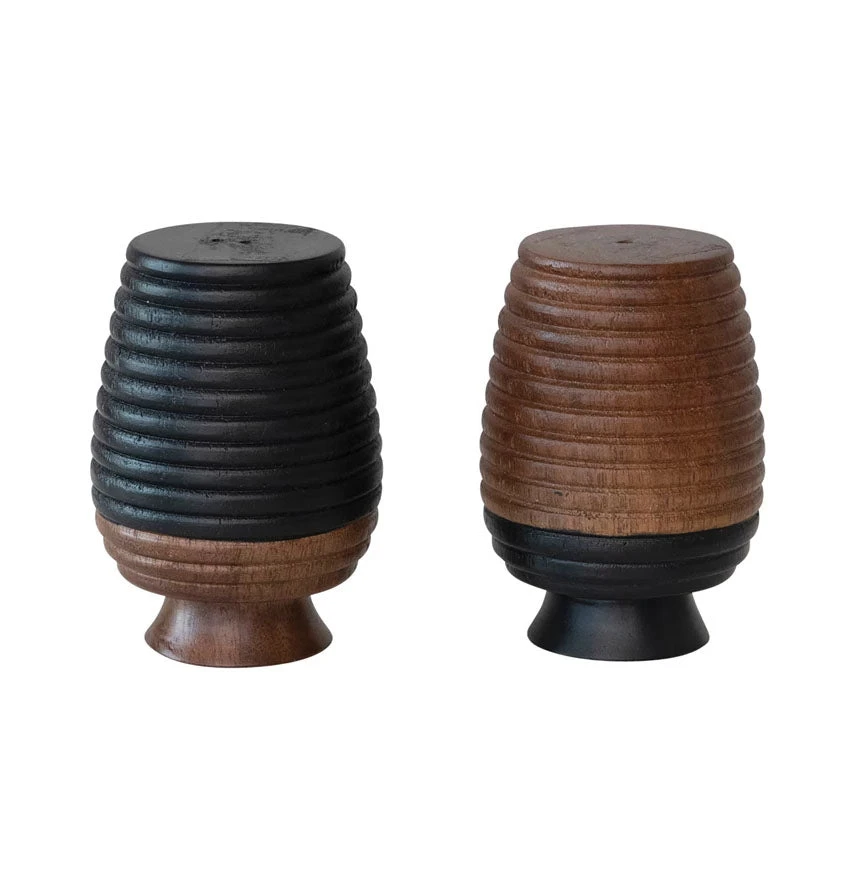 This set of mango wood salt and pepper shakers will make a great addition to any dining room or kitchen. With the charming design and fun colors, it’s sure to add to the decor of the kitchen.