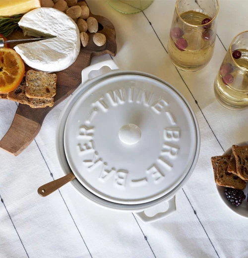 This Ceramic Brie Baker and Acacia Wood Spreader Cheese Set will make your guests feel like they’re at a fancy party. Place your cheese in this baking dish top with your favorite jam or honey, place in oven for 15 minutes at 350°F, and then serve it up. You can pull this dish out of the oven with its sturdy handles.Â