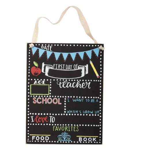 Help your child celebrate a milestone with the “First Day of School” chalk sign. Start by writing down your little ones name then fill out the rest of the spaces to commemorate their big day. Hang this sign in the living room to show how proud you are of their accomplishment.Â