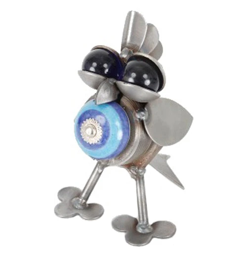 This cute little “CK Bushing Bird” will bring a smile to your face with its own as well as look great in your décor! Handcrafted in Kentucky, this piece is made using scrap and rejected metal, featuring a bushing reducer and cabinet knob for the bird’s body! This adorable critter will make a great gift for the animal lover in your life!
