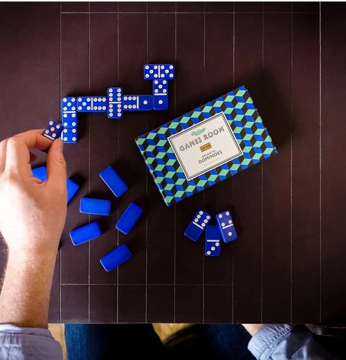 Have your friends and family gather for a fun night with the “Dominoes” game. This game features 28 dominoes packaged in a giftable storage container. You can line them up to knock down or play a competitive game with a friend.