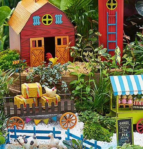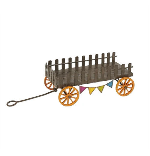 This miniature “Farm Wagon” is built for fun! The brightly colored flags make it a great addition to a county fair or farm mini garden. Take yourself back to your childhood with this fairy garden decoration.