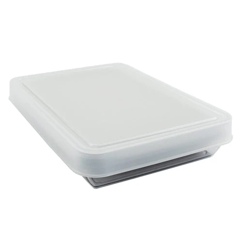 Food Prep Trays link together on your countertop for mess-free breading and prepping. Kit includes 2 stainless steel trays, a base tray and a lid that stack neatly for compact storage.