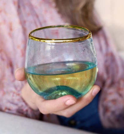 This set of two bubble wine glasses will make a nice addition to your wine glass collection. With the gold rim and charming design, it is sure to go well with any wine after a long day at the office.Â