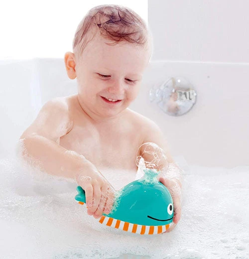 Get your little ones excited about bathtime with the “Bubble Blowing Whale” bath toy. Simply fill the whale up with 3-5 drops of bubble bath or liquid soap and watch as bubbles appear when you drop him into the bath. This whale will float on the water as it waits for more soap.