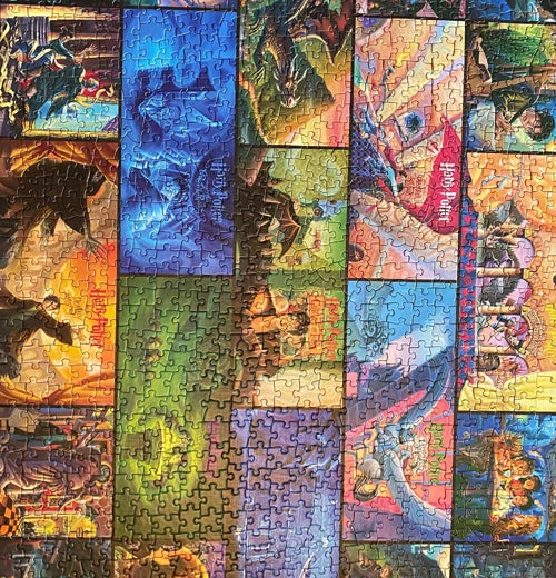 This vibrant puzzle features cover art from the Harry Potter books. Illustrations by Artist Marie Grand-Pré. Enjoy a childhood favorite as a puzzle any day!