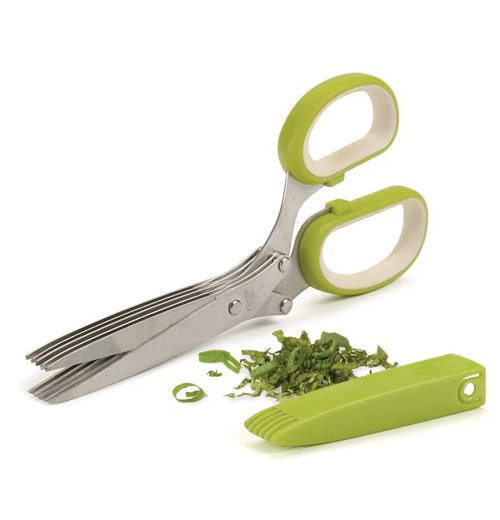 Cut, chop, mince, and snip herbs and vegetables in no time with these multipurpose Herb Scissors! These scissors come with a comfortable cushioned, non-slip grip handle with 5 sharp 3-inch stainless steel blades and a protective blade cover to keep your hands safe! Perfect for herbs and more, keeping flavors crisp, clean, and preserving the health benefits and flavors of your favorite herb or vegetable!