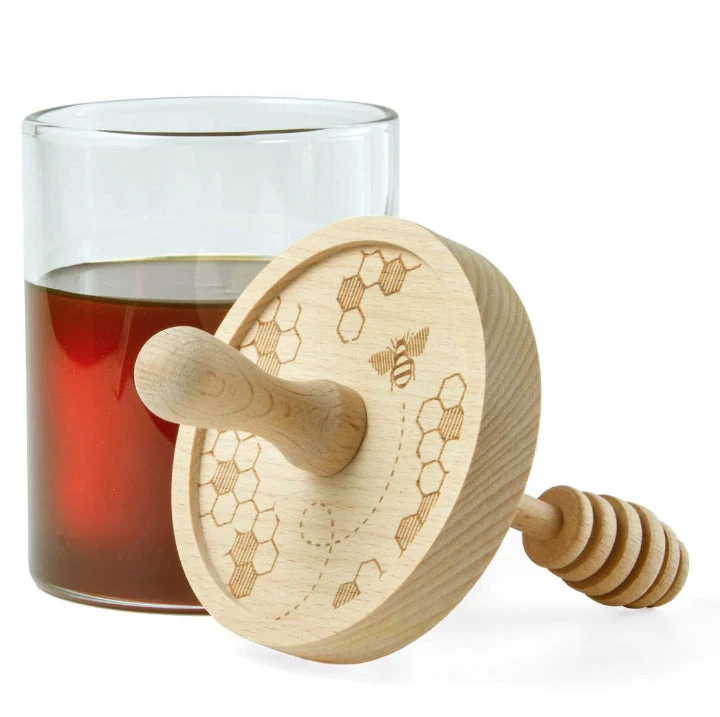 The Honey Bee honey dipper jar is great for serving up honey for tea, or biscuits. You’ll keep your fingers clean as you use the dipper to dispense honey. Have this honey jar out for all your tea parties.Â
