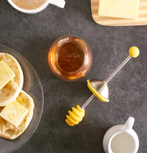Bring something sweetness into your life with the “Honey Jar” with a dipper. The jar features a silicone dipper to prevent your honey from drying out or crystallizing. The dipper comes out of the jar for you to sweeten up tea, coffee, and more.