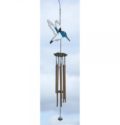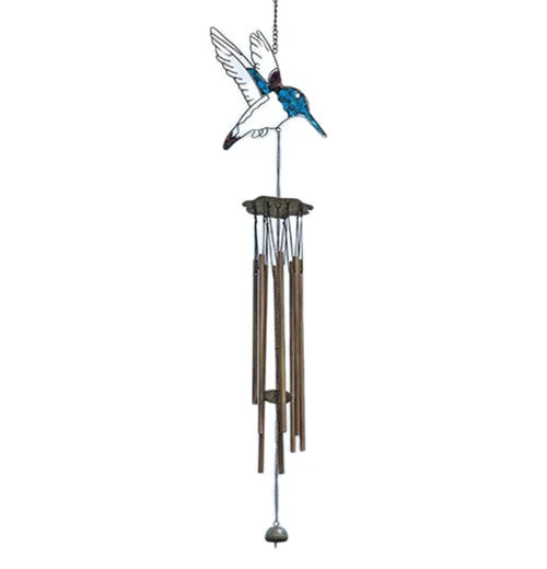 Oh, look, a hummingbird! This cute hummingbird wind chime will create a soothing melody as the wind blows through its chimes. The wind chime will be a beautiful addition to your outside décor and is easy to hang anywhere!