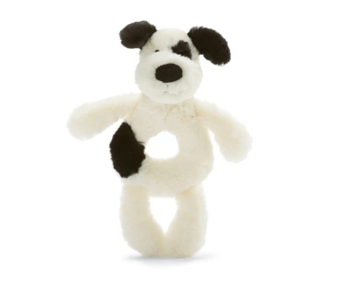 This cute little black and cream stuffed puppy rattle will be the perfect starter bedtime toy for your baby. It can entertain your baby as well as be a good cuddle pal when it’s time to sleep. The puppy has a ring so the baby can have a good grip while he or she is shaking it and making it rattle.