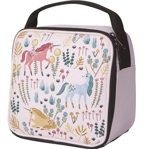 Bring your lunch with you in the insulated lunch bag. This lunch bag features an woods-themed design with cabins, bears, rabbits and trees on an off-white background. Keep your food cool and organized in this fun food container.