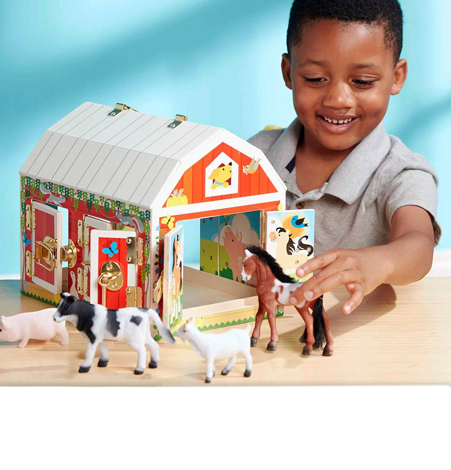 Children can play imaginary games with all the barn animals on this nostalgic, latch-plentiful farm.
