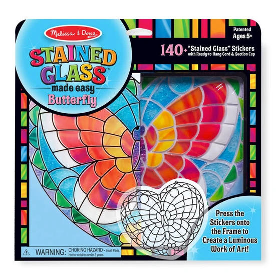 This peel-and-press sticker craft gives kids everything they need to easily create a spectacular piece of “stained glass” art. Just hold up the sheet of colored stickers to the clear frame, peel them off one at a time, and stick them on. Grooves and outlines on the frame make it easy to fit each sticker–featuring realistic textures like bubbles or swirls–into just the right spot. Use the included cord and suction cup to hang the finished artwork in a sunny window to see the beautiful butterfly shimmer to life. Young artists will be enchanted by the results and proud to show them off!