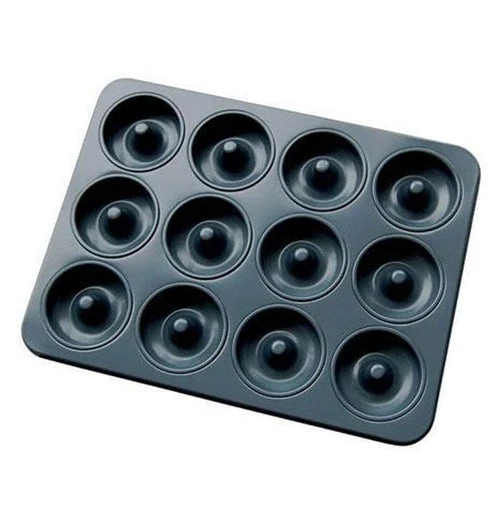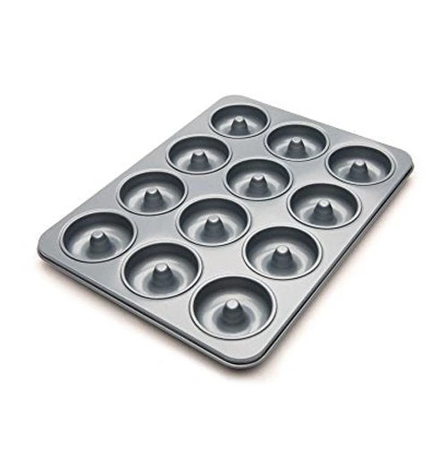 Bake fresh donuts at home with this non-stick mini doughnut baking pan. The heavy-duty carbon steel non-stick coating transfers heat evenly for consistent baking so the doughnuts will release easily and make the pan easy to clean.