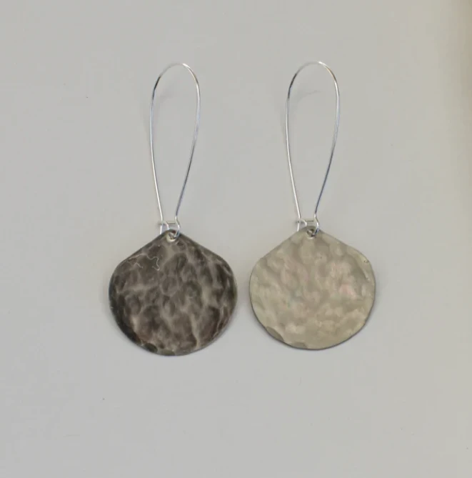 Simple and classic, these Moon Drop Earrings are hand cut and textured to give that vintage hammered look. Made of lightweight metal, these earrings won’t weigh down on your ears!