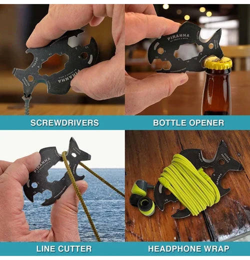 This is a wicked little functional and fun multi tool. The “Piranha Multi-Tool,” will take a bite out of your workload. Slip it in your glove box, pocket, wallet, or purse, and be prepared for anything no matter where you find yourself.