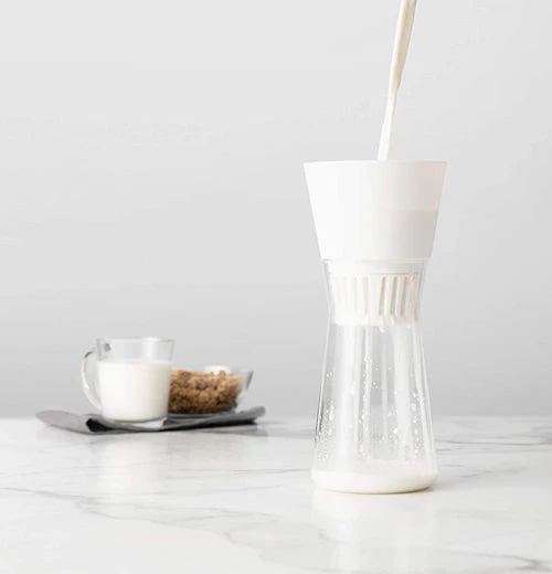 Does making your own milk alternative at home sound a little… nutty? If so, we’re here to show you how simple it can be! Just combine a cup of whole raw nuts with 4 cups of room temperature water in the Nut Milk Maker Kit, seal it, and let it sit for twelve hours. Then blend the mixture in a blender and strain it in the kit for 30 minutes.