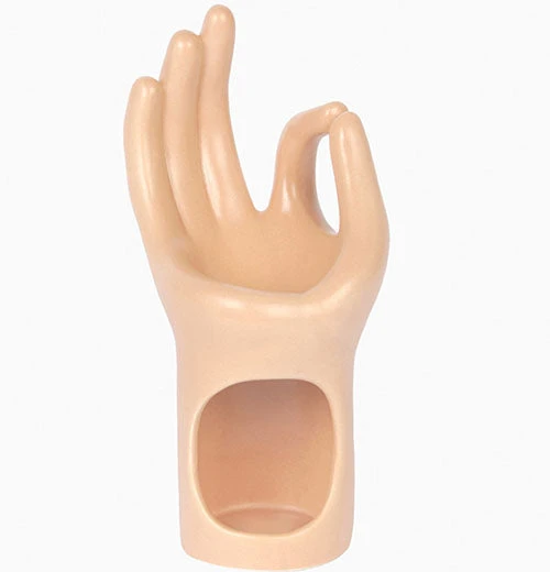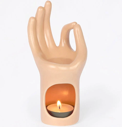 A yoga hand mudra inspired the form of this burner for essential oils. Put a little tea candle or whatever essential oil you choose on top, then let the calming aroma fill your house.