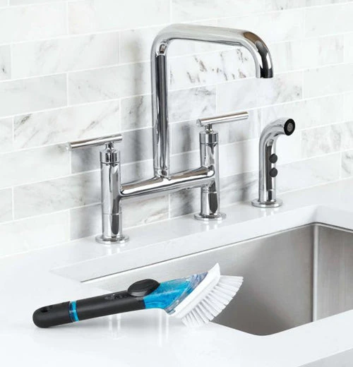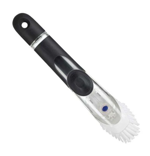 This useful soap dispensing brush will make a nice addition to your kitchen. With a light push of the soft, non-slip button, the silicone valve shoots soap onto your dishes, then quickly seals to prevent drips and waste. The brush Includes a scraper on the back to aid in the removal of baked-on foods from your cookware. The brush’s durable nylon bristles are safe for non-stick cookware and bakeware, so you can scrub with peace of mind.