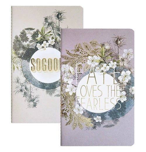 Here is a notebook set for those who love to write and draw. The Fearless Fate notebook set has one lined and one unlined notebook. One reads “So Good” in gold letters the other “Fate Loves the Fearless” in white and gold. It will make the perfect gift for any writer/artist.