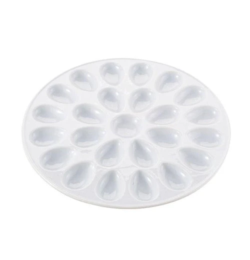 HIC Kitchen’s Fine Porcelain Deviled Egg Dish is a versatile serving platter that’s specially designed for preparing, serving, and enjoying horderves. Whether a traditional recipe or more elaborate preparation, this plate makes a spectacular presentation at any table. It works equally well for deviled eggs, shrimp, lobster bites, baby scallops, stuffed mushrooms, petite desserts, and more. An ideal hors d’oeuvres serving plate, the individual wells around the plate hold 24 deviled egg halves and a center well serves up seasonings.