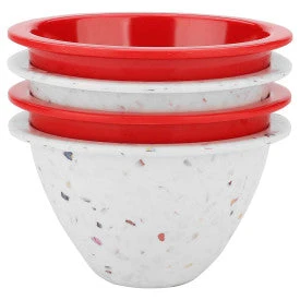 This set of 4 Confetti “Red & White” prep bowls has 1950’s styling and modern functionality. These bowls are ideal for meal prep, serving condiments or dessert; perfect for indoor and outdoor dining and entertaining.