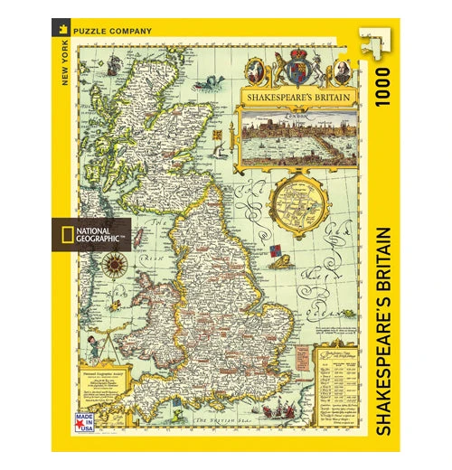 For Shakespeare and literary fans everywhere, this “Shakespeare’s Britain” puzzle is sure to be the next big hit. The artwork depicts a map of England showing all the locations, cities, and annotations where Shakespeare’s United Kingdom-based plays were set.