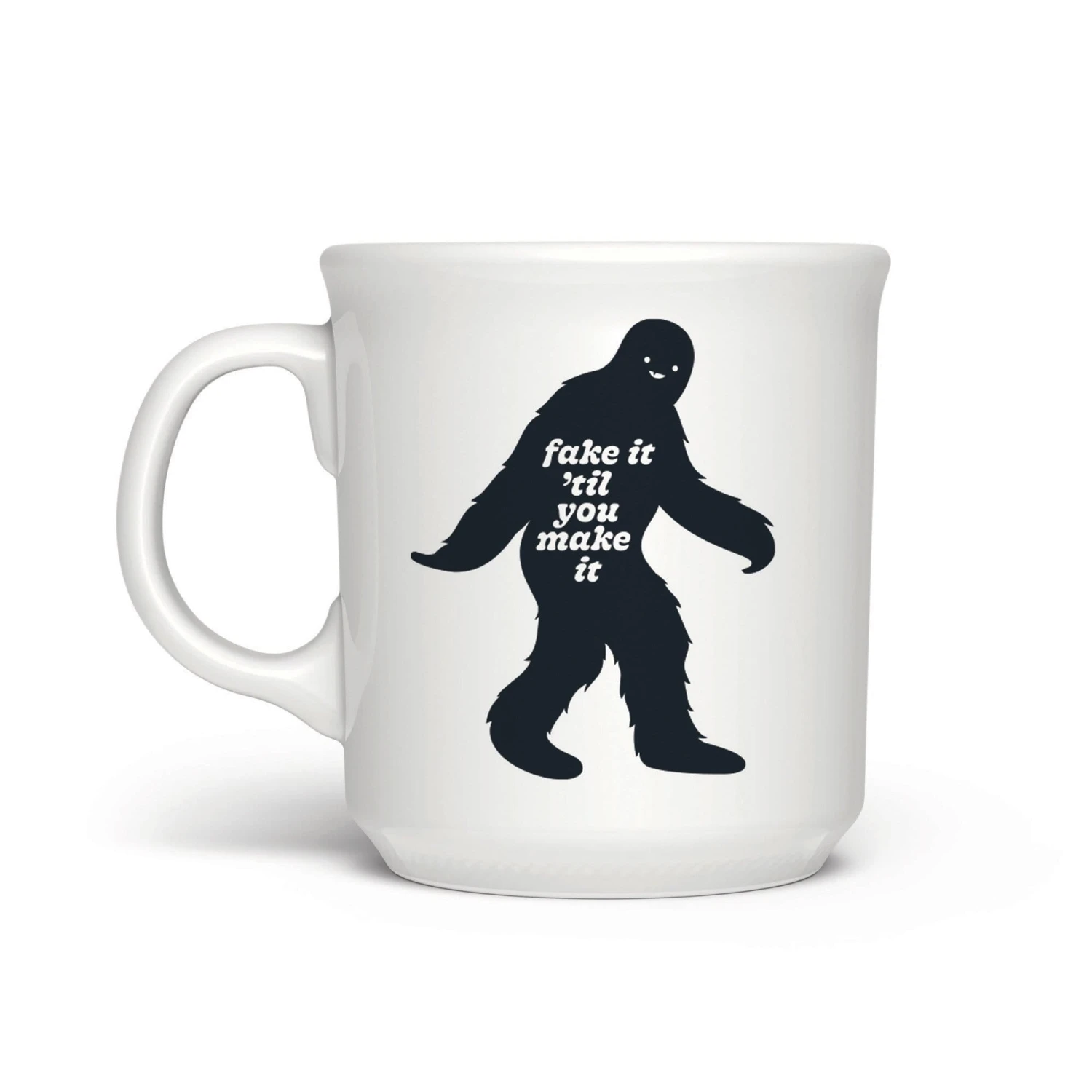 This “Fake It” Say Anything mug tells the world exactly how you feel. It says that you “Fake It Till You Make It” in white letters on a silhouette of a Sasquatch.