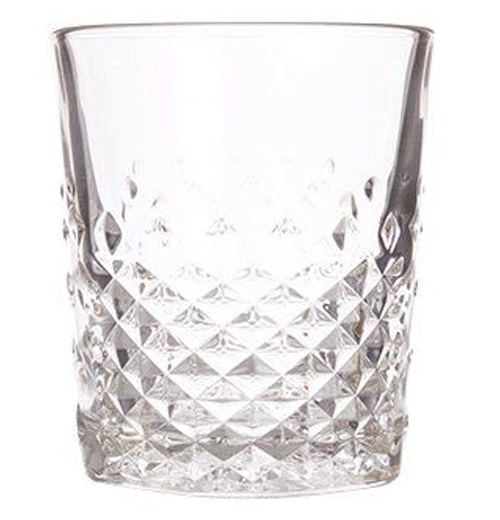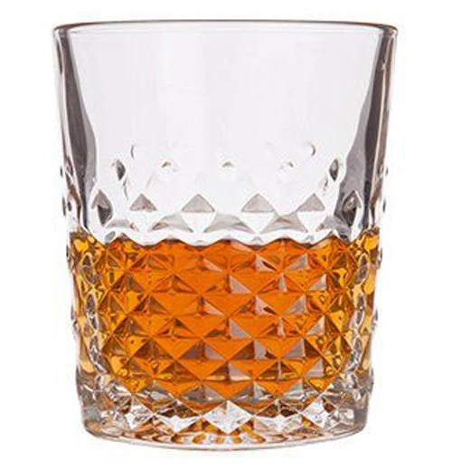 Four 12 ounce glasses feature a retro-inspired, textured design perfect for enjoying a scotch on the rocks.