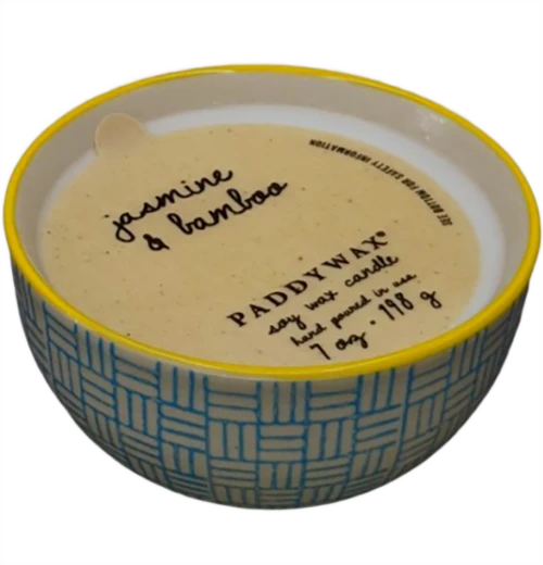 Jasmine Bamboo Candle from the Boheme Collection poured into a hand painted bowl.