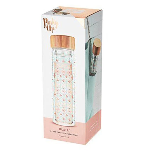 Brew your tea on the go with the “Blair Arabesque” travel mug infuser. This wonderful travel mug features a blue, orange, pink, and gold foil design. It’s double-walled construction keeps liquids cold or hot for a longer period of time and the exterior wall stays cool to the touch. Never leave home without your favorite brew of tea from now on.