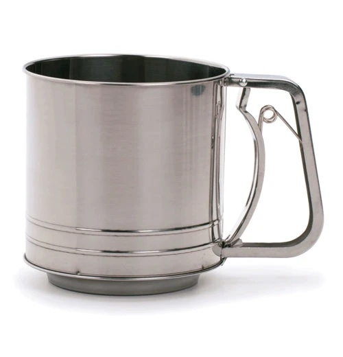 This squeeze-style Triple Mesh Flour Sifter is a must-have for a baker’s well-equipped kitchen! With a 5 cup capacity, you’ll be able to sift all the dry ingredients necessary for your baking project! Made of stainless steel, this sifter is last you a long time!