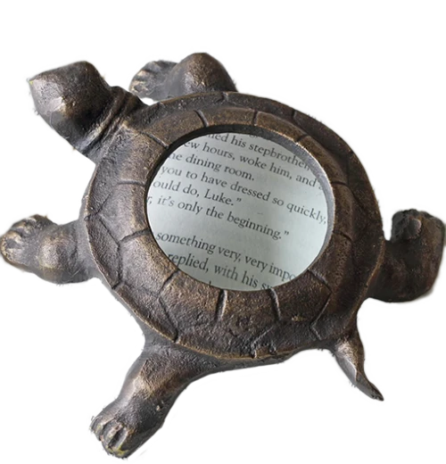 This cute cast iron turtle magnifier will make a great addition to any library or study. his will come in handy to read small text and make paying bills and doing paperwork a more manageable task. It will also be a nice piece of decor for your desk or work area.