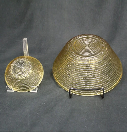 A Sorrento Amber Chip and Dip Glass Bowl Set. Both of them share the same textured design. If you are looking for a good chip and dip bowl that is amber in color this would be a good one for you.