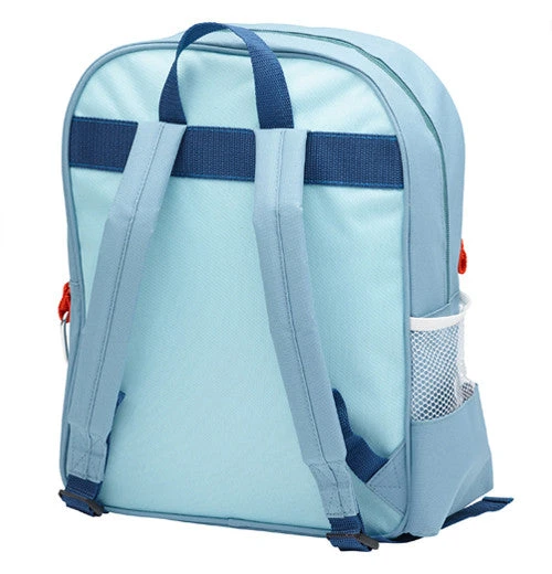 This roomy but simple backpack is big enough to hold a notebook and supplies, a lunch sack, or even a sweatshirt. This backpack is sized just right for little kids to carry. Deep-sea fun in a swimmingly blue color palette awaits the intrepid explorer ready to tackle recess, lunch, or spelling.